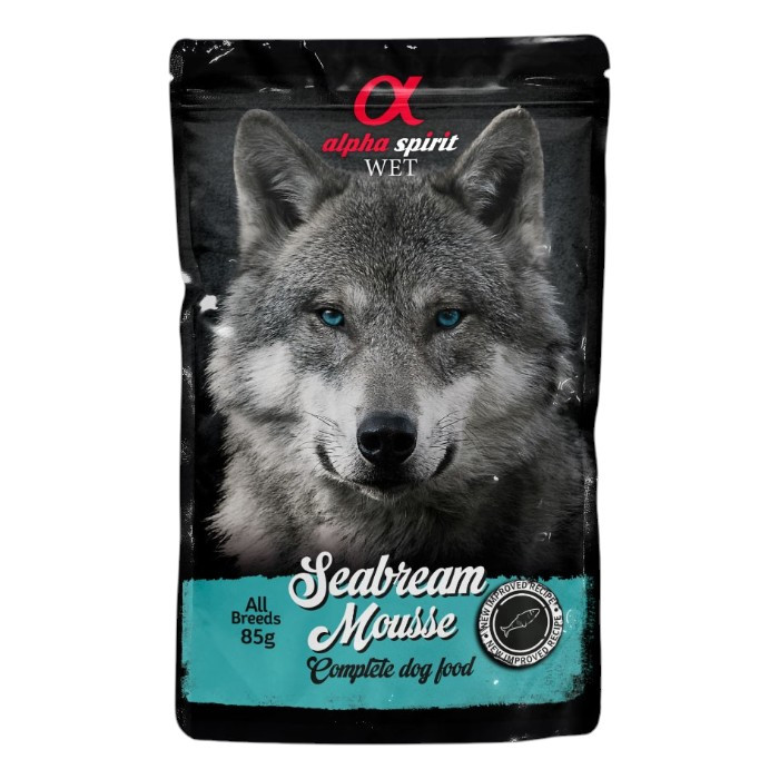 Alfa Spirit mus od orade u kesici je kompletna vlažna hrana za odrasle pse, napravljena od visokokvalitetnih sastojaka, proizvod za uravnoteženu, zdravu i ukusnu ishranu. Može se koristiti i kao dodatak suvoj hrani za bolji ukus.