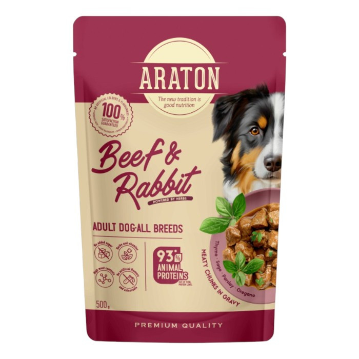 Araton mokra hrana za odrasle pse govedina i zečetina.