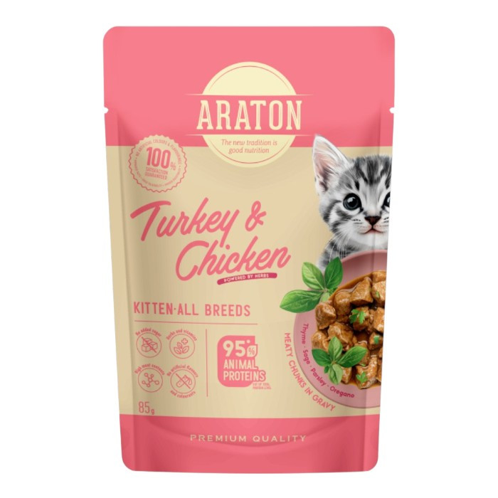 Araton mokra hrana za mačiće - puretina i piletina 85g.