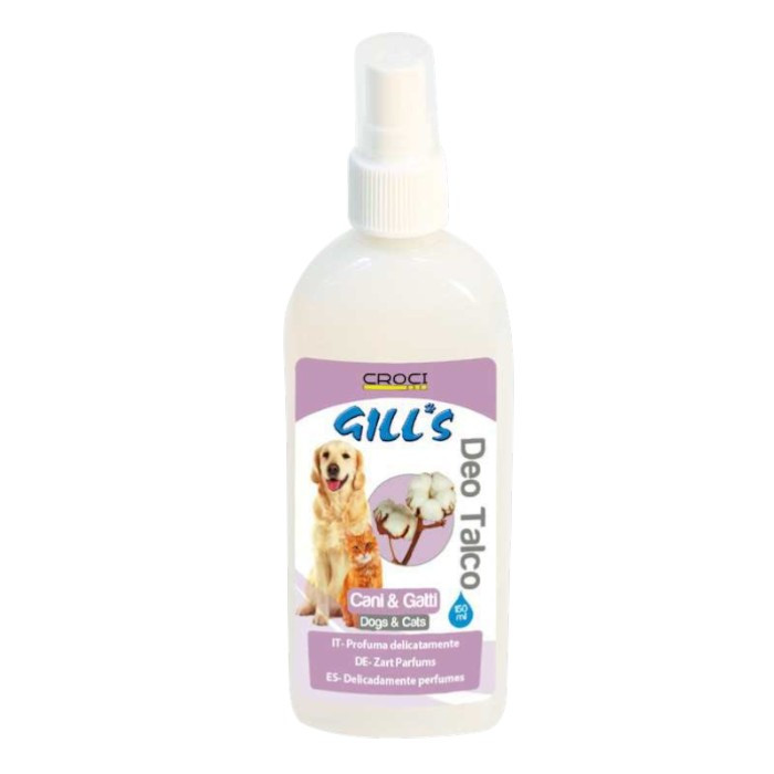 Gill's Talc Deodorant za kućne ljubimce je ekološki dezodorans s nježnim mirisom talka. Ne iritira kožu i parfimira dlaku psa i mačke nekoliko dana.