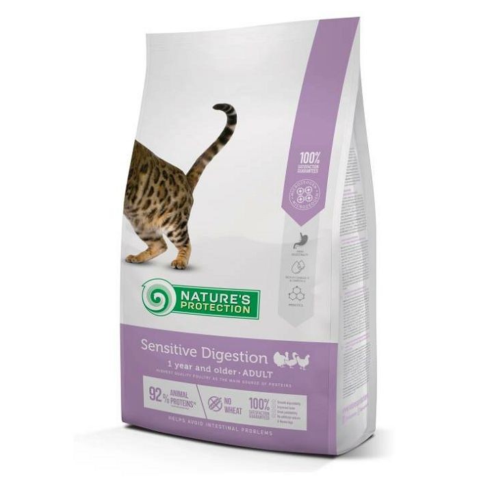 Nature's Protection Sensitive Digestion hrana od peradi za mačke starosti 1 godinu i više je Super Premium potpuna i uravnotežena suha hrana s najkvalitetnijim izvorom proteina i sirovinama. Sastav ove suhe hrane za mačke obogaćen je sastojcima koji su savršeni za obezbjeđivanje potrebne količine kalorija, vitamina i minerala za mačke sa osjetljivom probavom.