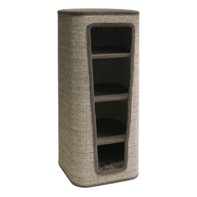 Visok 120 cm i dimenzija 50 x 50 cm , ovaj grebalica poziva vašu mačku da se penje i posmatra okolinu. Nekoliko skrivenih ulaza i ugodnih mjesta za odmor unutra nude vašem mačjem prijatelju utočište za opuštajuće pauze ili uzbudljive igre žmurke. Savršeno za znatiželjne mlade mačke, kao i za mazne pratioce.