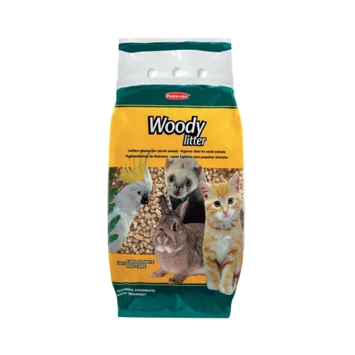 HIGIJENSKA PODLOGA ZA MALE ŽIVOTINJE. Woody se dobija obicnim prešanjem vlakana jele, bez dodataka drugih tvari. Idealna je podloga za sve male životinje kao macke, tvorove, glodavce i ptice, i zbog visoke apsorpcije i upijanja neugodnih mirisa. NACIN UPOTREBE: Dobro ocistiti higijensku kutiju macke ili dno kaveza, pokriti površinu Woody proizvodom u sloju debljine od oko 3 cm. Mijenjati povremeno dio proizvoda sa cistim. Zemlja porijekla: Italija