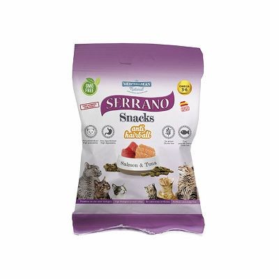 Serrano Snacks Anti Hairball losos i tuna poslastica za mačke 50g